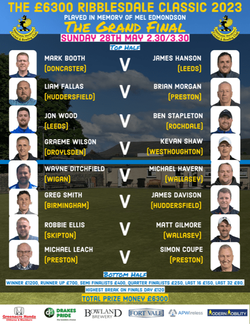 THE £6300 RIBBLESDALE CLASSIC FINAL 2023 Finals Day – Sunday 28th May 2023 Practice from 2:30pm and games start at 3:30pm