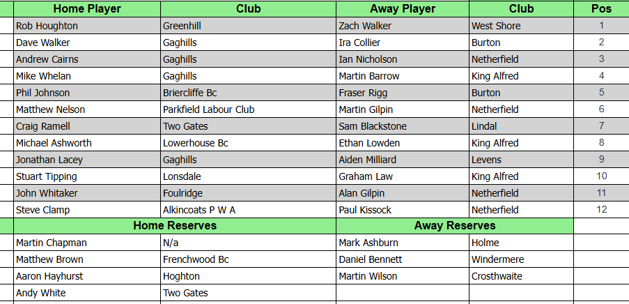 The home fixture is taking place at St Andrews Bowling Club, Abinger Street, Burnley, BB10 3ED. The match starts at 2pm. All spectators are welcome and bar/refreshments will be available.