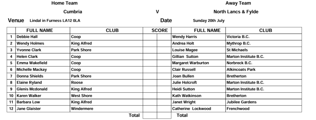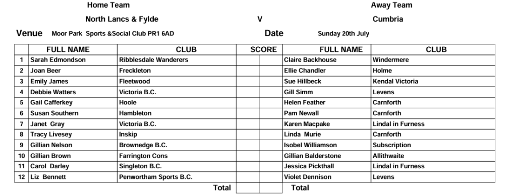 North Lancs & Fylde Ladies take on Cumbria Ladies in the final round of Section 1 on Sunday 20th July.