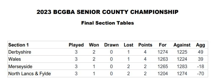 Match Result: NL & Fylde 448 defeated Merseyside 395 (+53)
