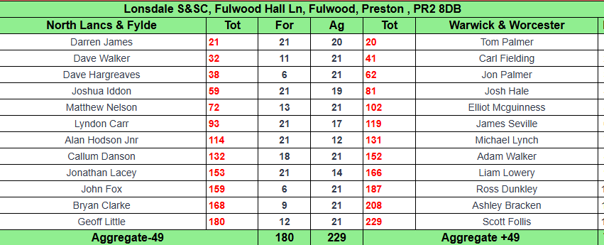 North Lancs & Fylde v Warwick & Worcester – Sunday 4th May