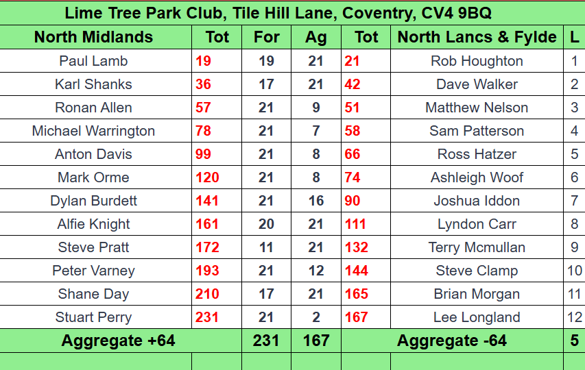 North Lancs & Fylde v North Midlands – Sunday 1st June 2025