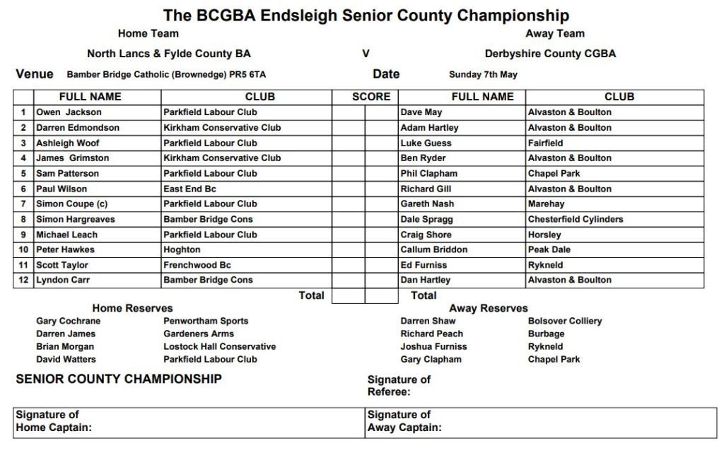 The competition is affiliated to the North Lancashire & Fylde County Bowling Association and to the British Crown Green Bowling Association.